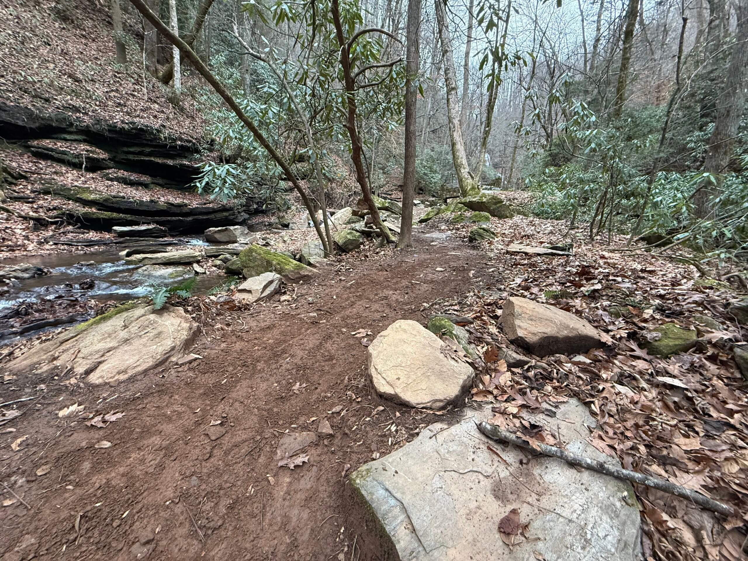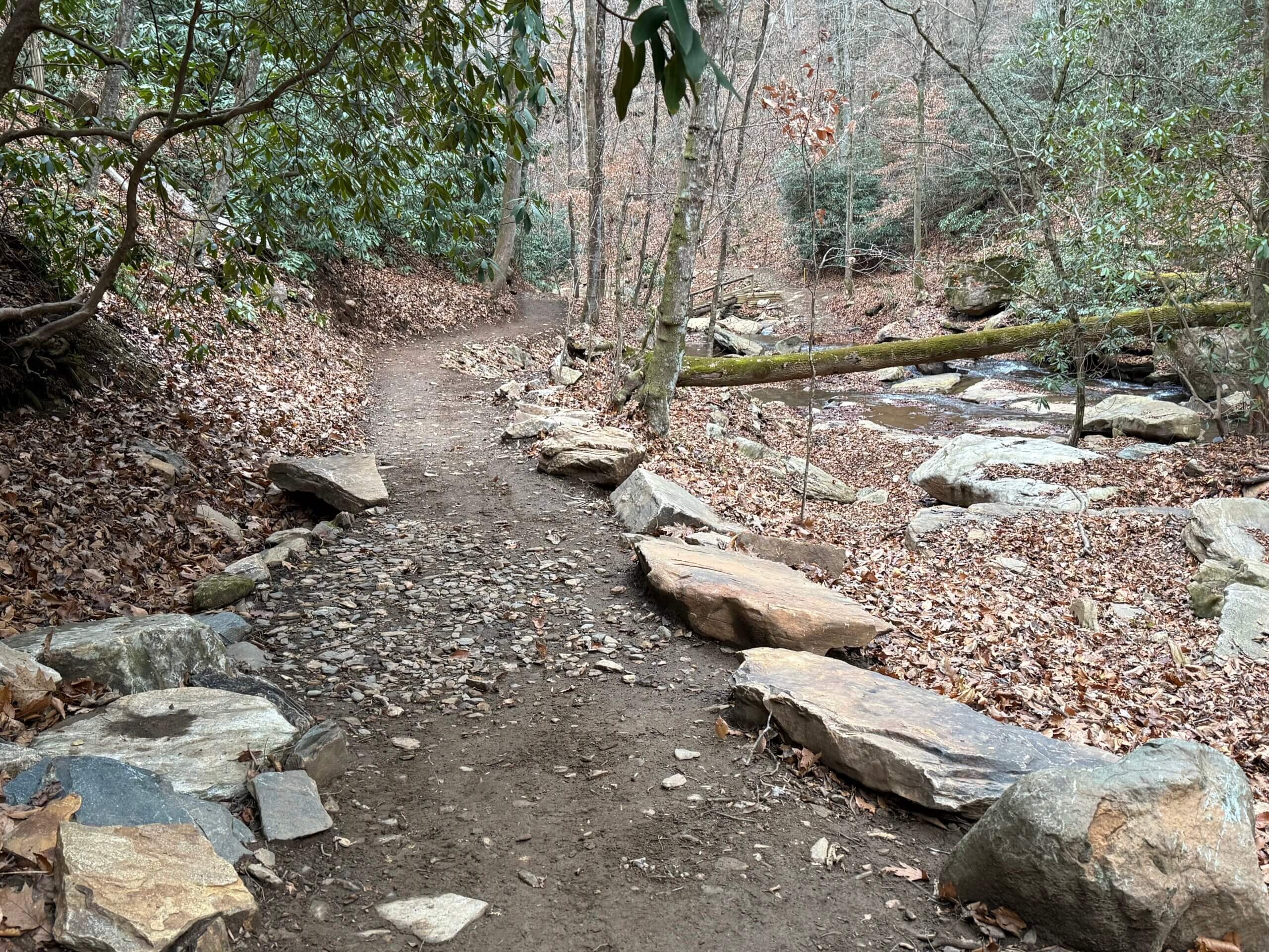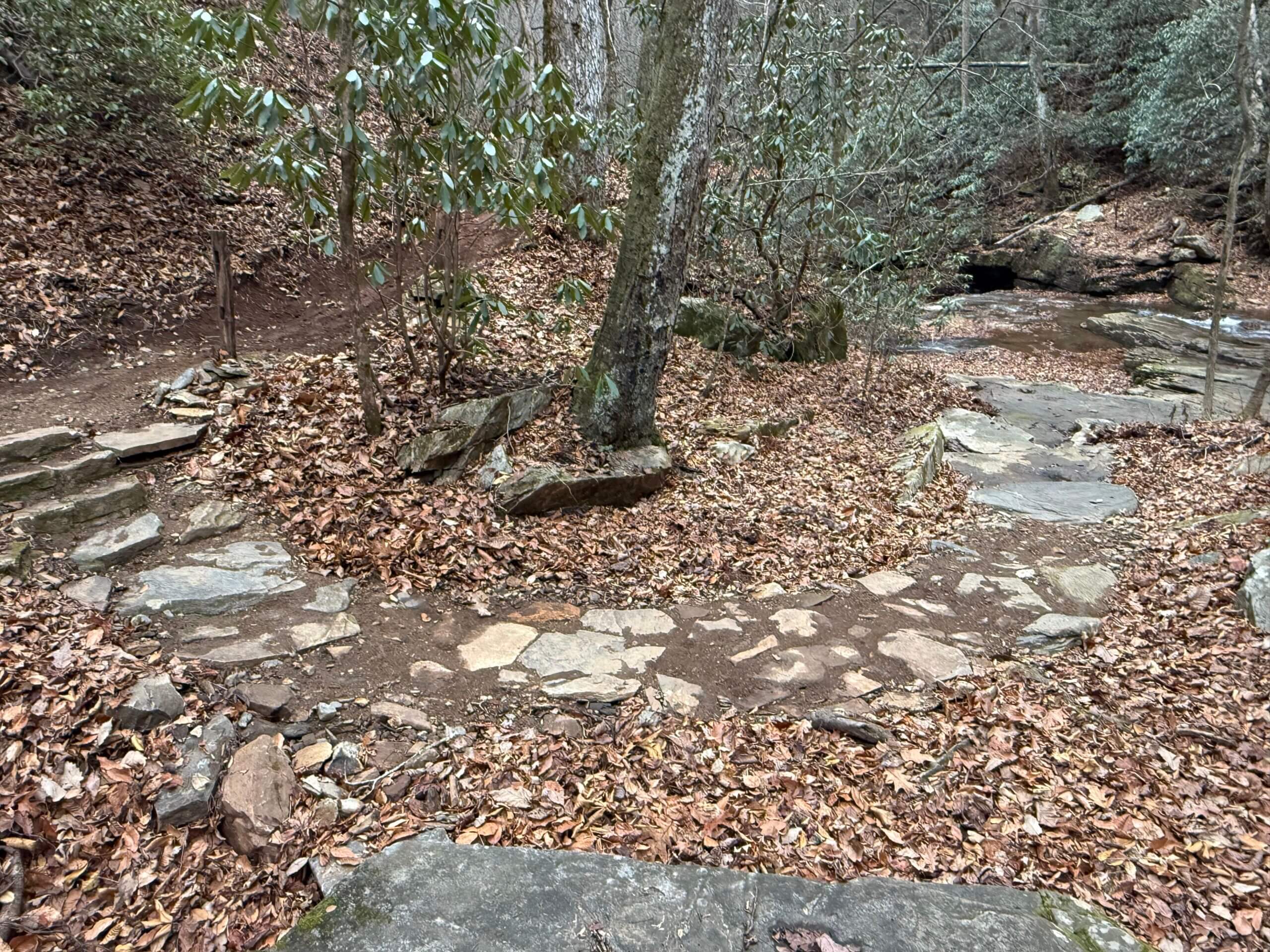9 months of work produced an amazing new path to #pearsonfalls. Hurricane Helene completely changed the route of the stream and overall landscape of this area. The new trail is engineered with minimal steps to.make the experience easier