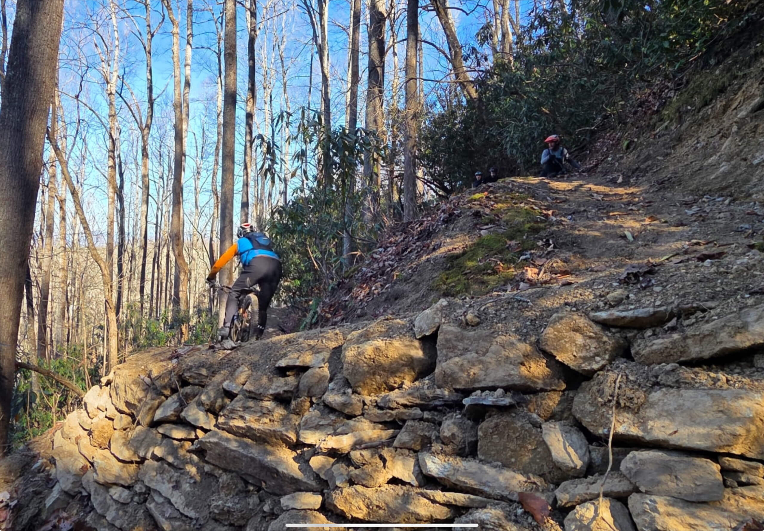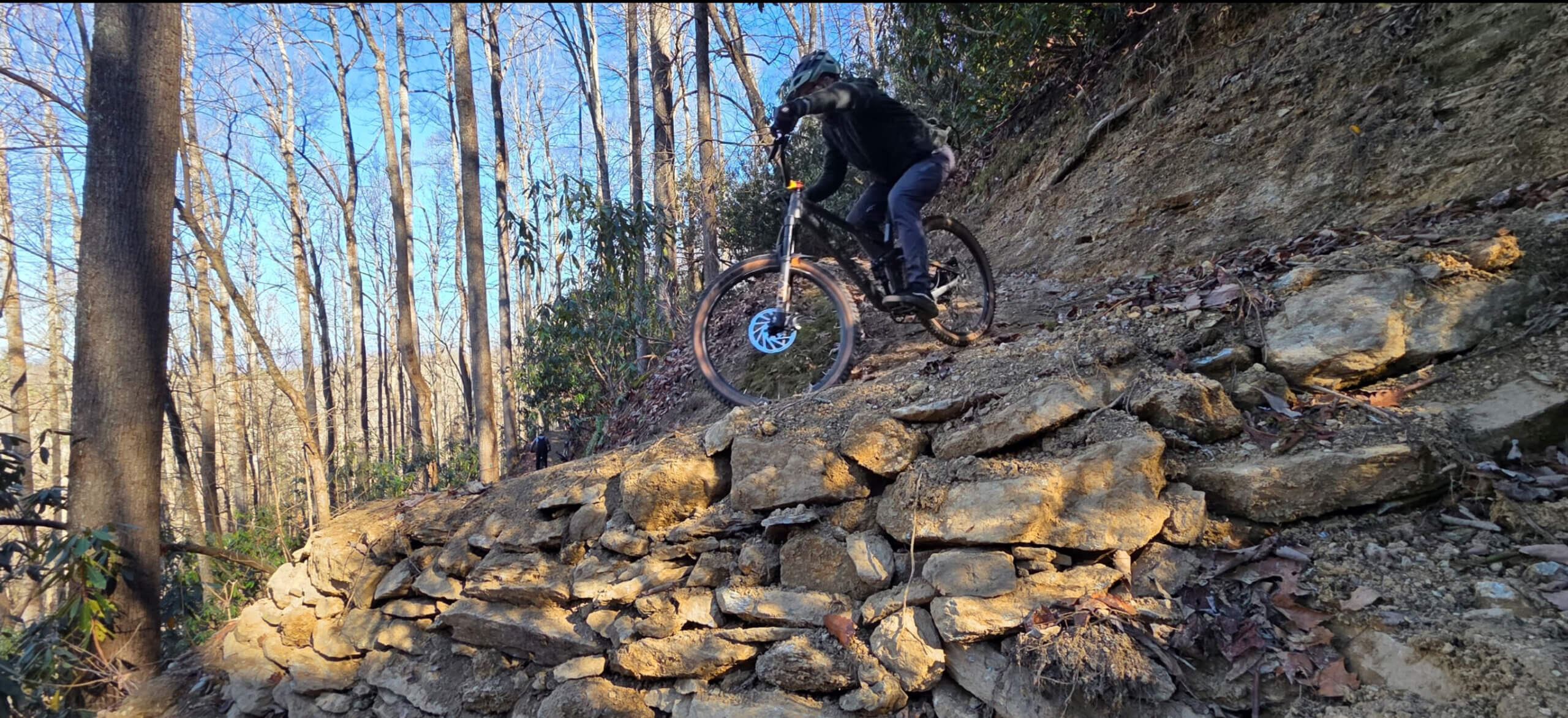 Switch back turn rebuild due to uprooted tree taking the entire corner out. Harvesting rock for the crib wall and dirt from the fallen trees rootball made for a rock solid turn!